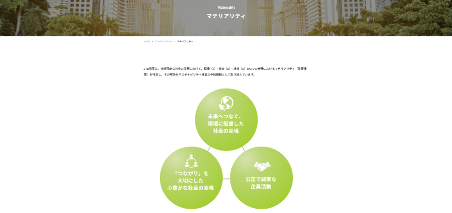 株式会社JTB商事(本社:東京都中野区、代表取締役社長執行役員:加藤雄次)は、2026年4月1日にコーポレートサイトの改定を行い、サステナビリティページを新設しました。